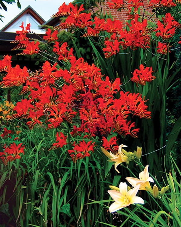 Crocosmia Lucifer, zwana także Montbrecją, bierze swoją nazwę od intensywności czerwonych kwiatów, które pojawiają się na elastycznych łodygach kwiatowych i prawie metrowej wysokości.Polecana za łatwość uprawy i cudowny zapach, o woni przypominającej krokusy, co znalazło odzwierciedlenie w jej nazwie.