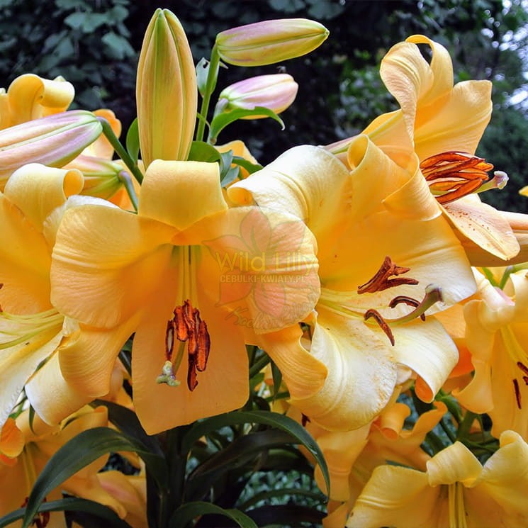 Lilia Drzewiasta 'Henryi' jedna z najbardziej znanych odmian lilii na świecie już teraz może zagościć w twoim ogrodzie! Odkryta w XIX w. przez irlandzkiego botanika Augustine Henry w Chinach, matka odmian takich jak 'Lady Alice' i 'Black Beauty'. Uznana za jedną z najwyżej rosnących lilii. Przy optymalnych warunkach, można się także spodziewać niewiarygodnej liczby kwiatów. Ich pomarańczowy kolor jest ozdobiony licznymi ciemno brązowymi plamkami oraz mocno uwydatnionymi wyrostkami. Kwiaty są bardzo trwałe, a cała roślina jest wyjątkowo odporna na wszelakie wirusy i choroby grzybowe. Podczas sadzenia lilii Henry'ego warto zastosować glebę bogatą w wapń oraz dać podpórkę ponieważ łodyga jest dość cienka i podatna na wyginanie. Kwitnie w sierpniu i świetnie komponuje się z takimi odmianami jak: 'Miss Feya', Scheherezade, 'Lady Alice', 'Beverly Dreams', 'Leslie Woodriff', 'Anastasia'.