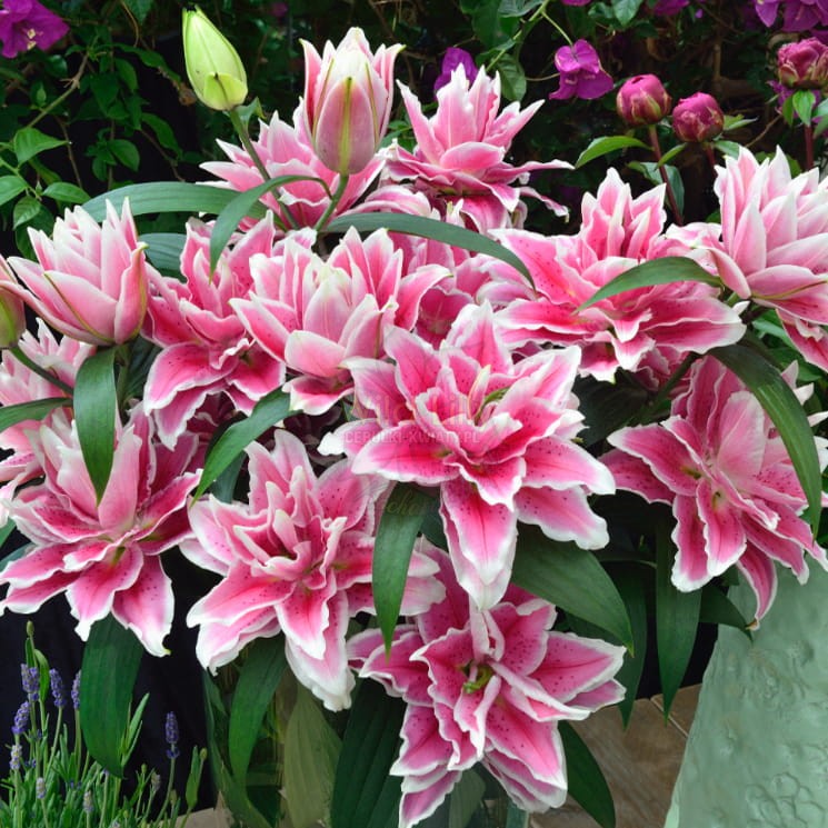 Roselily Samantha to fascynująca, podwójna wersja światowej sławy lilii Stargazer, prezentująca jaskraworóżowe i białe płatki z czerwonymi piegami. W odróżnieniu od tradycyjnej Stargazer, Roselily Samantha zaskakuje obecnością 3 lub 4 dodatkowych warstw płatków, zastępujących pręciki kwiatu. Z niezwykłą paletą barw, licznymi, potarganymi płatkami i ujmującym aromatem, Roselily Samantha zachwyci w ogrodzie każdego kto na nią spojrzy. Układ płatków przypomina wygląd róży, gdzie liczne zestawy pełnią rolę pylników, nadając kwiatom pełniejszy wygląd i łagodniejszy zapach. Bezpyłkowość sprawia, że te podwójne lilie orientalne są idealne do wnętrz i doskonale sprawdzają się w wazonach rozmieszczonych w całym domu. Roselily Samantha to nie tylko piękno ogrodu, ale także kwiaty, które z przyjemnością ozdobią wnętrza. Jej duże, różowe, podwójne kwiaty z szerokimi białymi brzegami i ciemnoróżowymi plamami w środku emanują urokiem i wspaniałym aromatem. Ten szczególny gatunek nadaje się doskonale do aranżacji bukietów ciętych. Niezależnie od tego, czy umieścisz go w ogrodzie, czy w donicy na werandzie, Roselily Samantha z pewnością przyciągnie uwagę i dostarczy niezapomnianych wrażeń estetycznych.