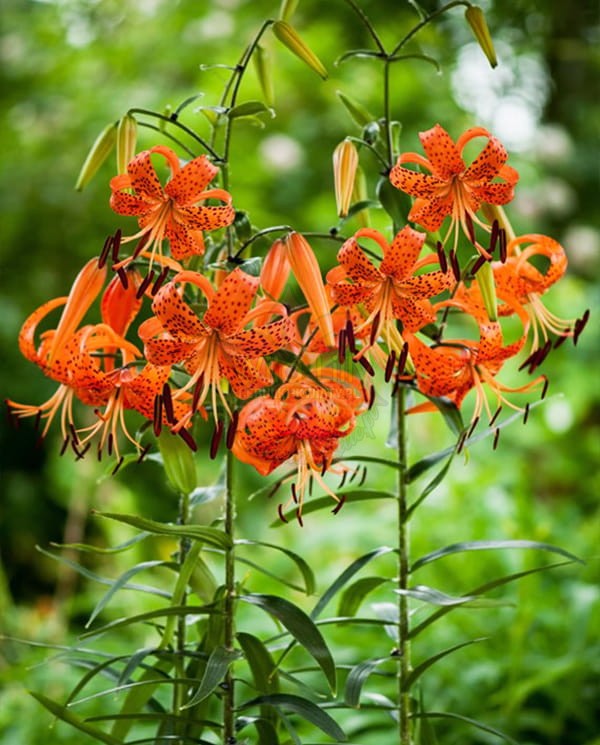 Lilium Lancifolium 'Splendens' to mocna tygrysia lilia jest ulubieńcem ogrodników dawnych czasów. Pomarańczowe kwiaty przypominają kwiaty czapki tureckiej i są pokryte ciemnymi plamami. Lilie gatunkowe to nierafinowane lilie pierwotne, o naturalnej odporności, przeznaczone do sadzenia na stałe w zieleni publicznej. Występują w wielu różnych kolorach i kształtach i charakteryzują się obfitym rozkwitem, w którym kwiaty kwitną kolejno od dołu do góry przez kilka tygodni. Wysokość ok 100 do nawet 150 centymetrów. Lilium tigrinum, czyli lilia tygrysia, jest jednym z bardziej rozpowszechnionych gatunków lilii azjatyckich w naszych ogrodach. Nie tworzy ona nasion, ale na pędzie wyrastają liczne, ciemne cebulki powietrzne, zwane też pędowymi, dzięki którym roślina bardzo szybko się rozmnaża. Gatunek ten przywędrował do nas z Korei, Japonii i wschodnich Chin. Wcześniej lilia ta była znana pod nazwą lancifolium czyli lilia lancetolistna. Niezwykle dekoracyjne, potocznie zwane "tygryski" posiadają bezzapachowe, turbanowe, łukowato wygięte, kwiaty o długości około 14cm, głównie skierowane ku dołu. Dojrzałe cebulki mogą produkować do 20 kwiatów na łodydze. Ciekawostką jest fakt, że lilie te ceni się szczególnie w Chinach, ale nie tylko jako roślinę dekoracyjną, ale również jadalną. Jest ona tam uprawiana jak "ziemniaki", a z cebul, dzięki dużej zawartości skrobi, sporządza się bardzo pożywne potrawy. Tygrysia lilia azjatycka charakteryzuje się nakrapianymi kwiatami z zakręconymi płatkami. Tygrysie lilie azjatyckie to mocne lilie, które łatwo rosną i generalnie dają dużą liczbę kwiatów. Kwitną od połowy do późnego lata. Lilie te idealnie nadają się do nasadzeń bylinowych oraz do sadzenia w doniczkach lub pojemnikach.